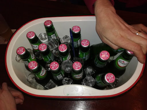 Goed bereid eten maar niet bijzonder en iets te duur. Ik had de ossenhaas puntjes met cashewnoten, taugé en sojasaus. Met nadruk op punt-jes... Minimaal maar de ossenhaas was wel uitstekend klaargemaakt en dus mals. Van de taugé was overigens weinig meer over. De opmaak op het (donkere) bord sprak niet echt aan. Een schaaltje Vlaamse friet, schaaltje gebakken aardappelen met mayonaise en een schaaltje salade (voor 4) als bijgerecht waren een regelrechte afknapper. Dat moet voor die prijs (€18,50) echt beter. De bediening was erg vriendelijk (top) maar kwam 5 keer te veel vragen of we nog wat wilden drinken. Irritant. Typisch voor een bar. Simpel nagerecht 2 bolletjes ijs was lekker maar al die slagroom erbij hoeft voor mij niet. We hebben met z'n vieren lekker kunnen zitten en nog wat natafelen met een biertje. Maar de prijs/kwaliteit verhouding voor het...