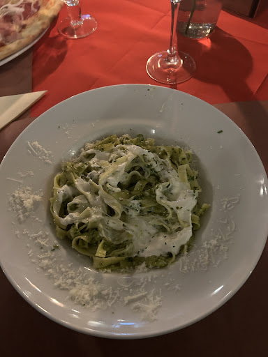Het voorgerecht was goed en de rode wijn ook.Het hoofdmenu (de drie pasta’s van het huis)is niet wat er verwacht mag worden. De tortellini die overbakken is en in saus ligt was zo hard/krokant dat deze de hele maaltijd verpestte. Miin vrouw had de ossenhaas met gebakken aardappeltjes. Bij het serveren van twee keer de ossenhaas vond de bediening het van belang om eerst tussendoor, bij de buren nog even een drank bestelling op te nemen en te bezorgen. Wij konden wel wachten op de resterende maaltijden moet zij gedacht hebben. Toen de sidedish werd geserveerd bleken dit frietjes te zijn ipv de gebakken aardappeltjes. Mijn vrouw meldt dit bij de bediening waarna er wordt bevestigd dat het inderdaad frietjes zijn. Een minuut later komt er een wat oudere vrouw uitleggen dat er in Italië geen onderscheid is tussen friet en gebakken aardappeltjes. Uiteindelijk kwam ze zelf ook tot de conclusie dat ze dan misschien toch maar de menu kaart moesten aanpassen. De ossenhaas met pepersaus is eigenlijk ossenhaas met mosterdsaus met daarin peperkorrels. Dus dat misschien gelijk aanpassen op de kaart. Vervolgens wordt de pasta al forno geserveerd. Nou de eerste tortellini die ik probeerde te kauwen was zo hard, dat ik serieus twijfelde of die ingedroogd was geweest. De tweede ook en de derde heb ik aan dezelfde mevrouw als voorheen laten proeven. Nadat ze met de kok had gesproken kwam het er op neer dat de kok beweerde dat het kwam door de al forme bereidingswijze. Onder de kaas en in de saus, dan hoor ik mijn kiezen er niet op te breken, zou ik zeggen. Om dan weer in een discussie te belanden met dezelfde mevrouw. Geloof me ik was al klaar met eten.