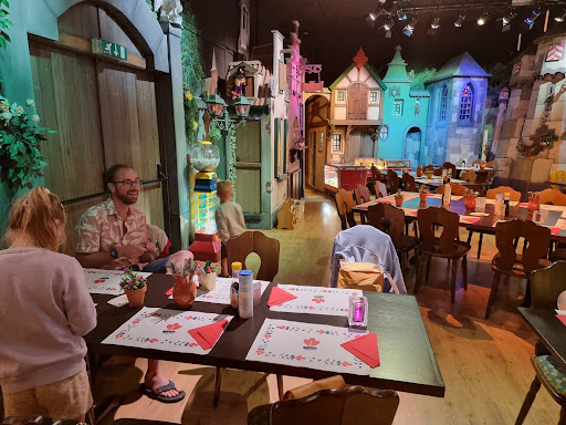 De lokatie op het bedrijventerrein doet in eerste instantie niet vermoeden wat voor leuks en verrassends er achter de deur zit. Bij binnenkomst word je meteen ondergedompeld in een warm, gezellig en tikje magisch, sfeervol restaurantje dat ook niet zou misstaan in de Efteling. Je bent echt even helemaal "ergens anders" en je kijkt je ogen uit naar de prachtige decors, verlichting en decoraties. Dit is super leuk voor kids, maar ook voor volwassenen! Dan het eten; zalige pannenkoek gehad, om je vingers bij op te eten! En een even zo zalig dessert! Goede ingrediënten gebruikt, met liefde klaargemaakt en geserveerd. Prijs-kwaliteit verhouding is top! De eigenaar heeft duidelijk passie voor zijn mooie restaurant, waarvan hij de prachtige decors met eigen handen heeft gebouwd. Zeker de moeite van een bezoek waard! En, ook erg leuk, je kunt hier ook je feesten en kinderpartijtjes laten verzorgen....