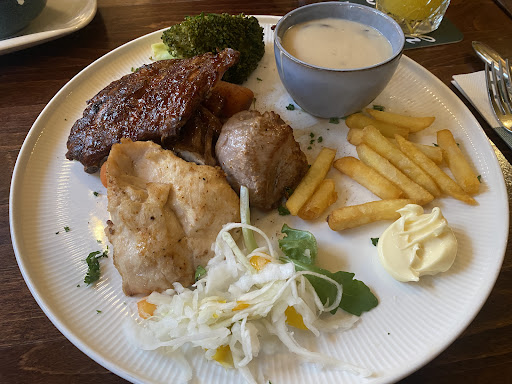 Het personeel was beleefd en vriendelijk, maar echte service bleef uit. De entrecote was een forse lap vlees, waarvan slechts de helft eetbaar was â de rest bestond uit pees. Toen we dit meldden, werd er alleen gezegd dat we âpech haddenâ dat het geen goed stuk was. Er werd verder niets aan gedaan.
