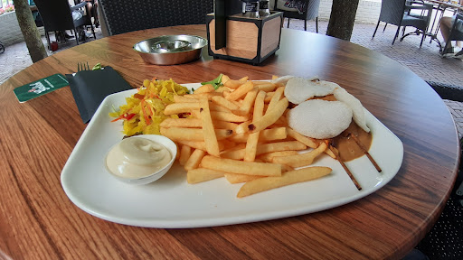 Read moreKaart ziet er goed uit, de nodige keuze is mogelijk. Ik heb gekozen voor de kipsaté, niet te duur ;-) Helaas alle waar naar zijn geld. Niet te duur is ook niet echt lekker. De kipsaté, als je het kip mag noemen waren twee stokjes met iets wat op vlees moest lijken. Maar of het kip was.... Waarschijnlijk was de kip er langs afgevlogen. Gelukkig waaide het niet op het terras anders waren de stokjes weggewaaid, zo dun was het 'vlees'. De satésaus was echt veel te dun, droop van de stokjes af. Het leek wel satésaus die uit de goedkoopste supermarkt kwam. Geen zelf gemaakte saus. Geen aanvullingen zoals wat pinda's, gefruite uitjes of seroendeng wat je normaal over de satésaus en kip krijgt. Ik moest het doen met vier stukjes kroepoek. Ook deze kwamen uit dezelfde supermarkt, smaakloos en kraakloos. De patat ach dat kon nog, evenals de mayonaise en de atjar tjampoer. De atjar tjampoer was nog aangekleed met één klein stukje van een slablaadje. Slechter kan altijd, maar dit gerecht kan best wel verbetering en wat meer liefde en inspiratie van de kok krijgen. Of geef het een andere naam, kipsaté' is een te groot compliment voor dit gerecht. Ik kan geen oordeel geven over de andere gerechten. Ik heb vaker kipsaté gegeten dus ik heb het nodige...