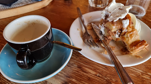 Read moreWe kwamen binnen in het restaurant, moesten omrijden vanwege de rolstoel. En gingen op een plek aan de zijkant zitten. Eenmaal geïnstalleerd wilden we een broodje bestellen. Dat kon niet werd gezegd alleen appelstrudel. Of krentenwegge. Wij appelstrudel besteld maar zagen om ons heen dat mensen andere dingen zaten te eten. We kregen ene uitleg dat het druk was. Toen werden de mensen die hier ook wilden gaan zitten weggestuurd met het bericht dat dit gedeelte gesloten was. Wij konden blijven zitten. En voelden ons wat opgelaten. Had het gewoon gezegd. De appelstrudel was kurkdroog en niet lekker. Mijn man gaf dat aan maar daar werd ook niets aan gedaan. Bij vertrek kon ik niet zonder stoten aan zijkanten het gedeelte van het restaurant verlaten wat ik erg vervelend vond. Ik wil me net zo vrij in een restaurant kunnen bewegen als een anderNiet echt rolstoeltoegankelijk...