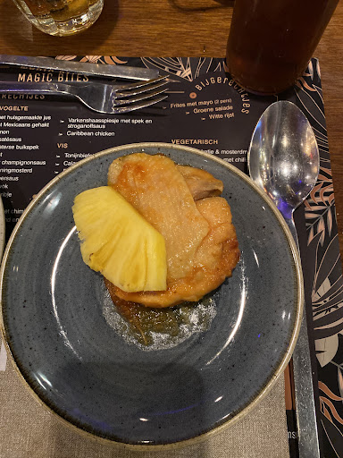 I would recommend to either change the name to Hawaiian chicken as I’m sur pineapple would be appreciated under this context. [They also make that the chicken is not pink, btw]