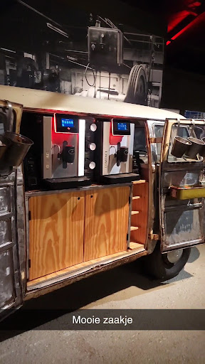 Read moreBlijkbaar een oude fabriek waar vroeger tafels en stoelen werden gemaakt is omgebouwd naar een leuke, gezellige en sfeervolle plek om wat te drinken en te eten. Op de achtergrond een lekker muziekje en een grote kast vol met spelletjes die je gewoon kunt gebruiken. Ook kan je daar kosteloos gebruik maken van een tafeltennistafele en een dartbord. Nog een leuk iets, je haalt je drank zelf uit verschillende apparaten. Lekkere koffie en thee komen uit een goed apparaat, frisdrank komt in blikjes uit een koeling en het bier en wijn mag je zelf tappen. Allemaal zelfbediening. Dat scheelt in personeel dus in kosten...
