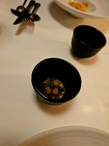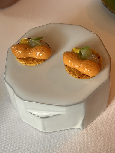Ze hanteren hier één menu waarin je kunt kiezen voor 3 of meer (maximaal 7) gangen. Gekozen werd voor 6 gangen en de gerechten zijn werkelijk subliem👌 en súper lekker, met onverwacht mooie combinaties. Mooie creaties die óntzettend lekker waren. Voorafgaand een aperitief als prosecco, gin-tonic en Vuurzee champagne bier (blond bier dat gebrouwen is op champagnegist), het diner vergezeld door een heerlijke witte wijn (waarvan ik de soort niet heb onthouden🫣) en afgesloten met koffie, espresso en friandises. Wat mij betreft ster waardig! Echt een...