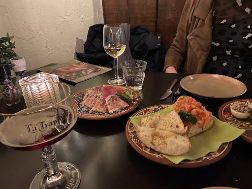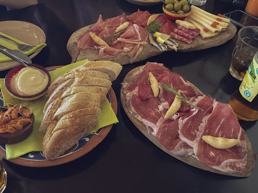 We hebben hier met een gezelschap van zes gegeten en namen de 19.50 euro per stuk menus met 4 verschillende rondes met ieder 3 verschillende tapas. De tapas waren zeer gevarieerde composities, van gemiddelde smaak en van voldoende kwantiteit. Er was hier en daar wat teveel met knoflook gedoseerd en de gerechten waren niet vreselijk warm waar nodig. Er was ook niets om ze warm te houden en gek genoeg werden koude en warme gerechten gemengd (dat is niet praktisch want dan koelen de warme gerechten sneller af en het straalt ook warmte naar de koude gerechten. Het kwam allemaal als wat amateuristisch kookwerk over.