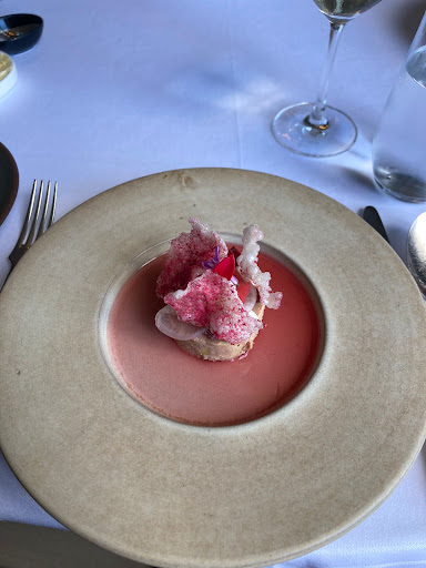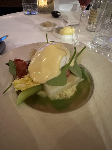 Het eten is lekker en ze doen hun best om lekkere passende wijnen met een verhaal te schenken. De ruimte is groot maar het diner toch zeker intiem. De bediening is stijlvol gekleed, vriendelijk, prettig en hartelijk zonder dat het gemaakt-amicaal is.