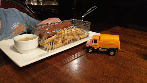 Vooraf een Carpaccio gehad, die was verrukkelijk .. als hoofdgerecht de Surf en Turf .. werd geserveerd met side dishes: frietjes, gebakken aardappels, groente en salade .. een plus punt is dat ze de mayonaise er bij kreeg zonder te hoeven vragen! Vind ik fijn đ .. qua portie was het voldoende .. smaak valt te twisten .. voor mij was het te zout maar over het algemeen was het wel ok .. als dessert heb ik de Onweerstaanbaar besteld .. die was goed maar van mij had de brownie wel van binnen nog mogen 'smelten' ....