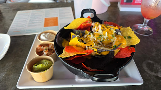 Nice place and view. Seems like they are still getting the hang of things. Bar seating on 4 sides and a few couches outside. Sitting inside at the bar makes the wind tolerable. They offer paninis and wraps and a few desserts. Also a DJ for music and we saw live music there one night. Be prepared to pay with cash or credit. We were told the option to charge to your room was not available yet. Hopefully they extend their Happy hour to match surrounding bars because right now it is only 1 hour from 5-6.