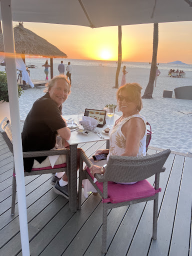 We had such an incredible dinner at Elements in Aruba â seriously, this place is a vibe. Itâs adults-only and right on the beach, so youâre literally dining with your toes in the sand and the sound of the waves in the background. Add a glowing Caribbean sunset and itâs pure magic.