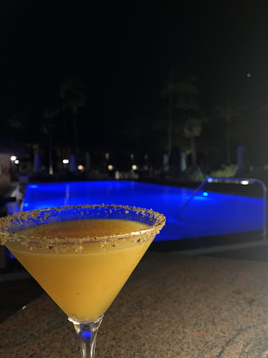 we recommend the: buff cauli, chickpea tartare, risotto, spicy mango martini, espresso with their mousse cake and Caribbean snickers. the ambience, service, and food were seriously out of this world. every detail from the diverse menu, poolside dining (well spaced), kind staff, perfectly seasoned and prepared food, etc is on point here.