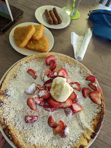 July 2021: 5â: I would recommend this location and this restaurant. I stopped by the Dutch Pancakehouse for breakfast/brunch with my spouse. We arrived at the location and found that there were about 16 people standing in line waiting to be seated. The wait time to be seated was about 45 minutes. After this waiting time, we were finally called to be seated. We sat for about five minutes before we placed our order with the server who had come to the table earlier to bring drinks. After about ten minutes, we received our order of two strawberry pancakes, hash browns and turkey sausages. My spouse initially said it was too much food, but was soon scraping the plate trying to get all of the remaining melting ice cream. Our server, Ghislaine, was very efficient, capable, and friendly. The workers inside the restaurant helped each other and brought all of our food to the table at one time. ALL of these workers were hustling to keep up with the customer's orders and customer needs. The food arrived hot and visually pleasing to the eye. We both ate all...