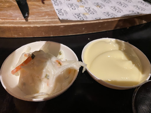 Hoofdgerechten zouden op de big green egg zijn bereid. Tja, bij sommige stukjes vlees zat er zat een bqq smaak aan, maar wel een twijfelachtige. (Ik herkende de aanmaakkunsten van mijn schoonvader. ( ff flesje aanmaakvloeistof erop en lucifer erbij, poef!)) De kip van de kip en ribs kwam zo uit de Steameroven en ik verdenk de spareribs hier ook van. Ze waren wel super gaar en de smaak en temperatuur waren prima. De friet was krokant en lekker. De salade zat een citroen doorheen, wat de salade naar mijn mening compleet verpestte. Ik heb dit bij de over nagevraagd waarom er citroen doorheen zat, maar die antwoordde met een grote glimlach: “Tja, dit zou kunnen, maar ik heb geen idee.” Vervolgens bleef het hier ook bij.
