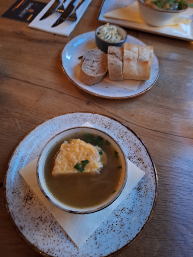 Read moreZeer nette bediening. Snel, correct en vriendelijk. Het eten was oké. Soep was wat saai van smaak. Varkenshaas was erg grijs, vegetarisch trio niet vers, leek uit de diepvries te komen. Niet krokant. Amuses waren vis (kwam later wel een vegetarische optie, compliment voor de bediening), bijgerechten waren aardappelen met spek en witlof met ham. Bij vraag of er een bijgerecht zonder vlees kon komen was dit geen probleem, wel weer moeten vragen. Je zou denken dat ze zelf dit zouden kunnen inzien, aangezien bij reservering al aangegeven was een persoon vegetarisch te komen en het bij bestellen was aangegeven. Toetjes fantastisch. Voor een borrel en de bediening...