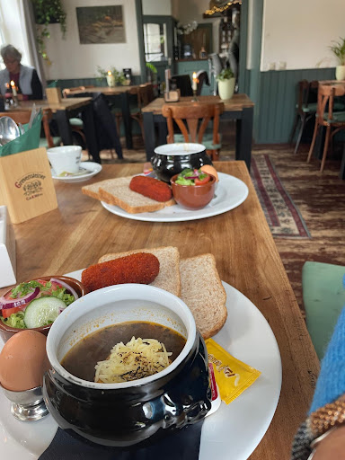 Ter gelegenheid van ons 50 jarig huwelijk hebben we met 25 personen gelunched in dit eetcafe. Vooraf hebben we onze wensen goed doorgesproken. Ook omdat er 1 familielid strikt glutenvrij is. Daarbij ook voor de bemanning en paardenverzorgers van de Onthaesting broodjes voor aan boord besteld. De tafels in de lunchkamer waren bij binnenkomst gezellig gedekt. Sonja zorgde ervoor dat het glutenvrije eten steeds als eerste werd uitgeserveerd. Het uitgebreide 12 uurtje was prima. Huisgemaakte eiersalade en kroketten met een kopje soep en brood. Heerlijk. Ook de versgeperste jus was echt vers geperst. Nog een schaaltje verse fruitsalade als afsluiting. Het was echt zo goed verzorgd! Binnenkort met z’n tweetjes maar eens het diner gaan uitproberen. Eind juli hadden we al eens koffie/thee met appelgebak uitgeprobeerd. Deze mensen weten hoe je gemberthee moet maken. En dan de appeltaart van Sonja! Voor ons dus alle...