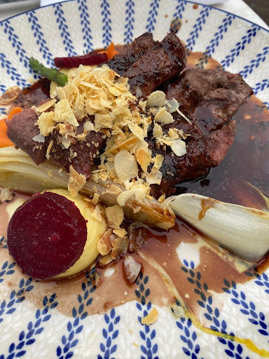 hoofdgerecht: Geweldig meer dan uitzonderlijk stuk rund. Ipv friet met gepofte aardappel, vanmij zouden ze dit mogen overwegen als serieuze alternatief want de gepofte aardappel is meer naar mijn smaak dan frietjes of salade. Mooi gerecht wederom met een culinaire hollandse keuken. Super gerecht!