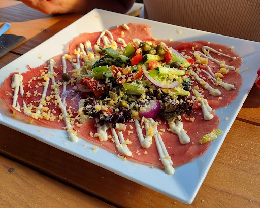 De carpaccio salade was heerlijk, beetje weinig groenvoer en een beetje veel kaas maar wel lekker. De clubsandwich viel goed in de smaak. De biefstuk was lekker maar miste wat decor, er zat enkel wat wit brood bij. De tosti was perfect, en er zat salade bij (die hadden we eerder verwacht bij de biefstuk)