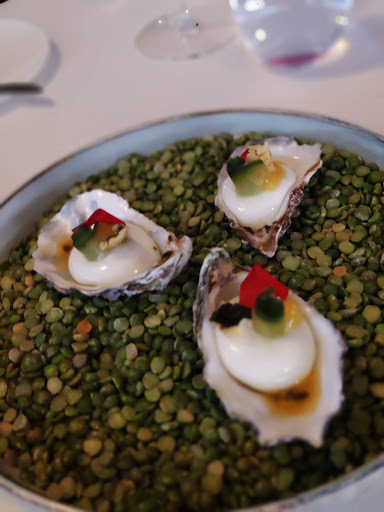 Read moreWe hadden erg uitgekeken naar ons bezoek nav diverse reviews. De ontvangst was naar onze mening afstandelijk en we moesten echt even onze pek vinden qua sfeer. Naarmate de avond vorderde werd de aandacht wat warmer en geïnteresseerder. We hadden gekozen voor het gold menu. We kregen daarbij een extra gerecht maar dat vonden we de €23,- echt niet waard. Vooraf bij de reservering kregen wij de vraag of we allergieën hadden of iets echt niet wilden eten. We gaven aan dat we allebei niet van oesters hielden. Daarvoor in de plaats kregen wij geen alternatief, dat viel erg tegen. We zijn geen grote eters maar zelfs voor ons waren de porties aan de kleine kant. Als laatste willen wij opmerken dat er erg veel tijd zat tussen de gangen. Ondanks de teleurstellingen op bepaalde gebieden was de smaak uitstekend en hebben we er echt wel van genoten maar helaas niet voor herhaling vatbaar.