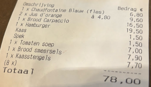 Read moreVery disappointed at our visit. We came for lunch outside on the terrace at the end of the lunch run, arriving at 13:15. Our orders were taken around 13:30, but we didn't get our lunch until 15:00. Yes it was busy, but this doesn't justify a 1,5 hour wait with no explanations or apologies while we were waiting, or any indication that it was going to take this long. To make matters worse, I was charged 2,80 euro simply for a top up of hot water for my tea. At the very least, they could have offered us a round of free drinks to make up for the long wait. I am deeply disappointed and will not be...