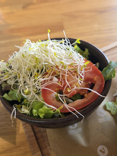 I wanted to eat and the closest option was this cafe. When I entered, I immediately saw the menu and ordered at the cash register without knowing that the waiter could come up to me. I simply said what I wanted, but they started asking me questions in another language since I am a foreigner, it was not easy for me to understand him, and he took advantage of this and added an extra charge for my burger for extra cheese, which I did not want. I sat down at my table and in just 5 minutes they brought me my dish. The burger was incredibly tasty, the sauce inside added a pleasantness to it, the potatoes were ordinary but hot, and the salad was not large but tasty. There were a lot of people around, this cafe was loud. But I really liked the food, so I left satisfied....