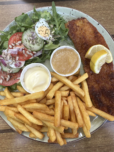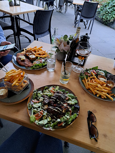 Wir durften ein Tisch aussuchen. Haben Tische im Freien zur Auswahl gehabt. Tisch wurde für uns leider nicht abgewischt. Das was wir wollten teilweise war aus. Mussten uns was anderes aussuchen. Das Essen wurde gebracht ohne Bestecke. Da saßen wir erstmal im Glauben, dass das noch gebracht wird. Weil es um Fleisch handelte und draußen war ziemlich frisch, wurde unser Essen langsam kalt. Mussten uns aufmerksam machen, Die Serviererin ging erstmal ins Restaurant rein. Und nach paar Minuten kam andere mit Bestecke zu uns. Die Steak-Streifen auf meinem Salat waren mit dicker Schicht der Gewürze überzogen, vor allem versalzt. Das Steak von meinem Mann war mit gleicher Schicht überzogen. Zum Glück hatte er in tiefe des Fleisches keine Gewürze, so konnte er noch die Versalzung ertragen. Ich muss sagen, wir waren hungrig, liefen bis hin ca 4 km zu Fuß. Mein Salat habe ich auch gegessen, versuchte mit Salat den Salz vom Fleisch zu mindern. Nachhinein habe ich das bereut. Mein Mund und Gaumen waren wie veräzt danach. Habe leider noch viele Stücke Fleisch meinem Sohn gegeben. Man kann nur raten wieso Koch Fleisch ungenießbar würzt, eventuell dadurch genießbar zu machen? Jetzt habe ich kleine Phobie im Restaurant sowas zu bestellen. Klar haben wir das der Kellnerin gesagt. Nicht wirklich eine Reaktion gesehen. Nächsten mal, egal wo, werde ich bei sowas Gericht zurück in die...