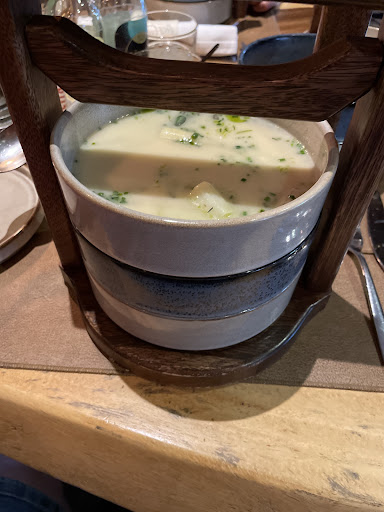 Read moreWe konden online geen menukaart vinden, ook niet op de website, jammer! Alleen wat foto’s van mensen, maar de menukaart bleek niet heel uitgebreid en nu totaal anders. Lastig als je een nieuw restaurant zoekt…Maar het eten was toch erg lekker en…leuk eigenwijs. De soep met zalm, werd geserveerd uit een theepot, de spareribs (zo gaar dat je de botten er zo uit kon tikken!!) op een lange houten plank met een mooie verrassende en lekkere salade en heerlijke frietjes. Het restaurant is mooi aangekleed en sfeervol, vooraan meer een café, maar om de hoek nog meer tafels en veel verschillende soorten stoelen en zitjes, leuk die afwisseling! Ook meerdere plekken voor wat grotere groepen. Toch ruim opgesteld. Het werd flink druk en het duurde daardoor wat langer voor je iets had, maar het personeel bleef vriendelijk en vloog heen en weer om iedereen te bedienen. Het regende buiten en was zo’n 18 graden, maar binnen liep de temperatuur wel aardig op, waarschijnlijk ook door de grote hoeveelheid echte kaarsjes die er brandden, erg sfeervol, maar wel snel warm. Toch al met al heerlijk genoten van het eten en de sfeer,...