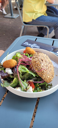 Read moreGetrokken door het bord met "koffie to go" moesten wij zeker de buuffies een kans geven. Echter kwamen er na de zaak lopend achter dat de twee mederwerkers buiten stonden te lanterfanten, ons nogal raar aan kijkend toen we aan het loket kwamen staan. maar op dat toch maar besloten zich achter het loket te haastte. toen wij onze koffie eindelijk konden bestellen werd die niet met het dure apparaat wat voor onze neus stond gezet maar ergens achter in hun keuken. Wij roken zagen en proefde meteen dat dit niet met een soortgelijke automaat als voor bij het loket stond gezet was. De prijs was 2,60 per koffie wat zelfs bij de starbucks niet gevraagd word die wij voor deze filter koffie...