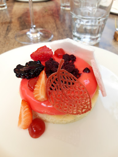 Read morevoor ons 5 jarig jubileum gingen wij ons samenzijn vieren in dit restaurant. Het was erg slecht weer, dus we konden helaas niet buiten zitten, maar dat mocht de pret niet drukken. Bij aankomst werden we ontvangen door de gastvrouw en werden we naar onze tafel begeleid. Mijn vriend had aangegeven dat het ons jubileum was en toen we gingen zitten, stond er een glaasje bubbels op ons te wachten. We lieten ons verrassen door het 5 gangen menu. De eerste gang was zeebaars. Ons werd aangeraden om de Riesling te nemen bij dit gerecht en ze hadden gelijk. Dit was zó een geweldig gerecht dat we voor even stil waren om te genieten van de smaak sensatie. de toon was gezet! Vervolgens kwam de steak tartaar, die al bijna even lekker was. De 3e gang waren kokkels en coquilles met weer een voortreffelijke wijn. Hierna heb ik voor hert gekozen, omdat ik dat nog nooit had gegeten, maar na de vorige gangen ik het wel aandurfde. Het was een hele goede keus. Heel mals vlees, met een prachtige saus. Naast het eten, is er over de ambiance en ervaring goed nagedacht. Het is een open keuken waar je dus direct kan zien hoe je eten wordt bereid, maar ook hoe handig deze chefs zijn. Het personeel is erg aardig en attent, waardoor je echt voor een avondje in de watten wordt gelegd. Al met al was het een feestelijk jubileum voor ons zullen zeker nog eens...