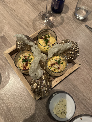The Oesterbeurs provides all ingredients for an excellent restaurant experience. The service makes you feel welcome and at ease throughout the evening. A combination of the warm welcome, the small talk from time to time by the staff and the overall professionalism. The restaurant has atmosphere, both on the outside with a traditional village style frontage, which is tastefully lighted at night, and a modern inside, decorated appropriately for this type of establishment. Tables have sufficient space between each other, which allows for a good conversation during dinner, without having to raise your voice. We choose the 5 course set dinner, with intervals between the courses allowing you to enjoy the food and company over a 3 - 4 hours period. The food itself was of high standards, fresh (local) produce, a variety of different tastes and textures, and right sized portions. If you ask me to choose my favourite dish, then I can't as they were all different and unique in their own way. When the bill arrived I was pleasantly surprised by the more than fair price for this lovely, quality dinner. Certainly will go back here when...
