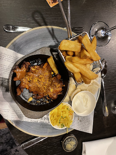 Read moreJe vraagt je af wat er moeilijk is aan het maken van een hamburger met wat friet maar in dit restaurant is dat bij mijn bezoek niet gelukt. Een saai broodje met een gebakken vleesschijf, kledderige sla in plaats van knapperig en friet die haast niet te eten was. En dat dan voor € 19,50.