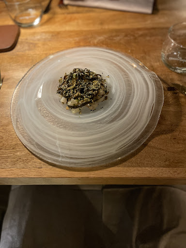 We kozen voor de "full experience", en dat bleek een uitstekende keuze. Elk gerecht werd niet alleen prachtig gepresenteerd, maar ook met passie toegelicht door de chef. De bijpassende wijnen waren perfect afgestemd en werden met evenveel enthousiasme uitgelegd – inclusief verhalen over de herkomst en de subtiele smaaktinten. Dit maakte de ervaring nog rijker.