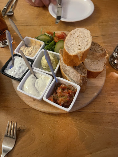 Read moreCulinair niet hoogstaand, al doen de prijzen anders vermoeden. Ik had voor 11.25 als voorgerecht een klein bakje gebakken mosselen uit de oven, met knapperige groenten. Ik houd best van al dente, maar de worteltjes waren gewoon nog rauw. Die worden niet snel gaar in de oven namelijk. Mijn vrouw had de toast Luculles, dat is dus een geroosterde witte boterham in een driehoekje gesneden met wat iets te droge gebakken champignons, niet echt bijzonder. Bij het hoofdgerecht zat wat sla en frietjes, die goed zout waren en net even te lang in de frituurpan hadden gezeten, waardoor ze hol waren en te vet. Vispotje en varkenshaas met champignonsaus kon niet zoveel mis mee gaan, al hadden we gehoopt op iets meer smaak. Ik had bij dit restaurant geen smaakexplosie verwacht, maar iets meer een zest mag het wel hebben allemaal. Deze eigenaren wilden na Rijnmozaïk in Arnhem een keer wat anders proberen vertelde de gastvrouw, die heel vriendelijk was inde bediening. Maar daar ga je het dan niet mee redden als het eten een beetje niets zeggend is. Sfeer qua muziekkeuze mag ook iets meer passend. De muziek op deze avond had ook net zo goed in een frietzaak of voetbalkantine op...
