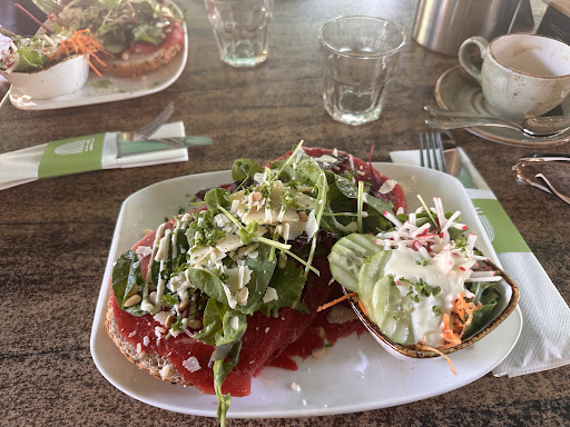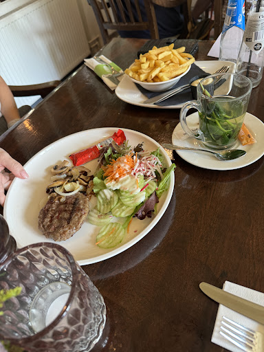 Bij het opnemen van de bestelling werd bij geen enkel vleesgerecht gevraagd of het vlees rare, medium of well-done gegeten wilde worden. Bij de bestelde bavette werd vooraf gewaarschuwd (!) dat het een flink groot stuk vlees zou zijn, van wel meer dan 250 gram! Alleen voor grote eters. Na het bestellen van dit €30,- kostende gerecht was niets minder waar; er kwam een saai en klein stukje vlees, van nog niet eens 100 gram, op tafel. Het stukje vlees was dermate lang was doorbakken dat het zo droog en taai geworden was zodat het op een stuk rubber leek. Zowel optisch als qua smaak beschamend en werkelijk niet door midden te kauwen. Het personeel erkende het slechte gerecht door het van de rekening te willen halen of een nieuw gerecht te serveren…
