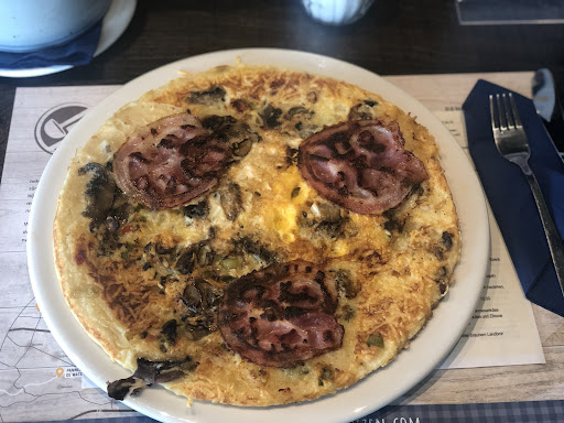 Wij hebben hier met zijn vieren hier gegeten. De bediening was echt prima. Vriendelijke meiden en niet opdringerig. Het formaat van de pannenkoeken is ook prima. Ze vallen net over de rand van het bord. Ze zijn niet te groot en ik niet te klein. De hoeveelheid beleg is echter wél aan de karige kant. De BBQ-chicken pannenkoek telde in totaal iets van 8 stukjes kip, en dat ziet er best kaal uit op zo'n formaat pannenkoek. De spek, kaas en ui pannenkoek had in totaal maar 4 plakjes spek. Het grootste deel van de pannekoek had dus géén spek. De hoeveelheid kaas was ook niet om over naar huis te schrijven. De appel-kaneel pannenkoek en de Mexicaanse pannenkoek waren wel prima. Zowel mijn vrouw als ik vonden verder dat de pannenkoeken net iets langer gebakken hadden mogen worden. Van binnen waren ze namelijk nog net niet helemaal gaar.