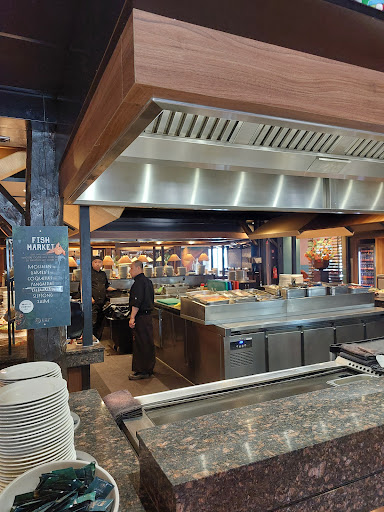 Read moreEen plek met 2 gezichten. Aan de ene zijde een goed en uitgebreid buffet met veel niet standaard gerechten wat ik echt een groot plus vindt. De sushi zijde helaas veelal Mayonaise sushi wat jammer is want met de ingrediënten die ze gebruiken kan je genoeg betere sushi maken. Het wok buffet zeer uitgebreid en zeer netjes, ondanks vol huis vrijwel nooit wacht rijen en veel keuzes uit smaken. Het grill gedeelte toch wel een tegenvaller als vis zijnde vind ik tilapia en pangas nou niet echt restaurant waardige vissen... sliptong stond er maar werd slecht gebakken. Vlees grill gedeelte ook tegenvallend chef vooral liefhebber van well done en de kwaliteit van het vlees was ook niet heel hoog, als je daarnaast ook nog vega kip troep gaat aanbieden tja... Dessert gedeelte zoals bij iedere all you can eat, spek koek was nep en gewoon cake dat is dan toch wel weer zonde. Alles wel erg schoon en goed bijgevuld. Kids gedeelte om te eten tegenvallend, alles frituur snacks en als enige een bak met doperwten en peentjes uit blik....onbegrijpelijk. kids speel gedeelte wel erg leuk en erg groot en met toezicht. Schminken, ballonnen maken, koekjes bakken etc voor kids echt helemaal geweldig. Sfeer en uitstraling van de gedeeltes waar je eten kan pakken echt geweldig, en ondanks de enorme drukte waren er nergens rijen. Het zitgedeelte wel erg teleurstellend alles vol gepakt veel en veel te druk daar ontstonden wel files en regelmatig een duw als je zit te eten erg slecht. Al met al ok, maar vind de chaos in het zit gedeelte in combinatie met de tegenvallende grill toch een reden om de volgende keer een alternatief...