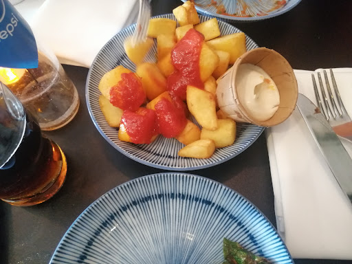 Read moreHeerlijke tapas. Soms lijken ze simpel, maar zijn allen van zeer goede kwaliteit! De wijnen zijn heel goed, wat je natuurlijk ook verwacht van een restaurant met deze naam. We zijn ondertussen al voor de herhaling geweest. Het personeel is vriendelijk en servicegericht. Het interieur vinden wij wat simpel en de tafels te klein. Maar al met al een goede nieuweling hier in Rhenen en we zullen ze zeker vaker bezoeken. Wel liggen de prijzen vrij hoog, nu zijn wij geen grote eters, maar als je een stevige eter bent denk ik dat je zeker moet rekenen op 50/60 euro alleen aan voor- en hoofdgerecht. Dus zonder toetje en drank. Wij namen het 3 gangen verrassingsmenu, dit is zonder toetje. Hiervoor krijg je 3x 3 tapas voor 2 personen op tafel en...