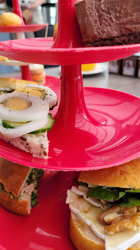 Hightea: de broodjes waren prima. Wel een beetje slappe groenten ertussen. De gebakjes waren meh. De scones waren wel lekker! En het personeel is gelukkig ook erg vriendelijk.