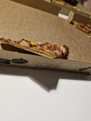 Read moreOmdat ik voor de avond een afspraak had staan en mijn werk overdag onverwacht uitliep dacht ik doe eens makkelijk en bespaar ook tijd en bestel eens voor mij als eerste keer een pizza bij Domino's Pizza in Roermond. Ik bestelde dus een large (30 cm.) pizza zoals ook duidelijk op de voucher stond. Dit werd mij ook nog eens door twee personen gevraagd dus moet goed zijn dacht ik. En ik zou tien minuten moeten wachten. Dit wachten was dus ook niets want moest je gewoon buiten staand doen en zijn er geen voorzieningen om even te kunnen zitten. Na ongeveer een kwartier kwamen ze naar buiten met echter een halve en kleine pizza. Bleek dat de bestelling van de mensen na mij en die van mij door elkaar waren gehaald. Resultaat was dat ik dus weer moest wachten en kwam ik hier door dus in tijdnood. Heb daar door dus ook echt niet van de overigens lekkere pizza kunnen genieten omdat men mij elders verwacht en ik bijna een half uur te laat was. Men bood mij nog aan om iets te drinken te pakken en men vroeg mij of ik ook de kleine, halve pizza mee wilde nemen. Heb ik afgeslagen omdat anderhalve pizza voor mij te veel is. Heb dus in het geheel bijna drie kwartier gewacht en had dus gewoon beter zelf een maaltijd thuis kunnen maken. Want inclusief het er heen en terug reizen had ik in een uur en een kwartier makkelijk zelf warm eten kunnen bereiden. Dus voor mij voor een eerste keer een zware onvoldoende en kies ik dan voor een volgende keer zeer waarschijnlijk voor een...
