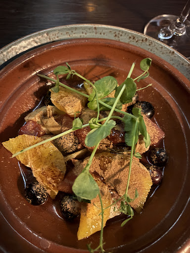 Read moreAl met al een matige ervaring gehad. Sfeer binnen is gezellig. Dame in de bediening was te veel bezig met serveren volgens het boekje, waardoor een echte persoonlijke touch ontschoot. Af en toe zelfs op het ongemakkelijke af. Prijs/kwaliteit verhouding niet echt in balans. Als hoofdgerecht lamsrack & lamsfilet gegeten (op de kaart één van de duurdere gerechten). Eén lullig koteletje (dit is geen lamsrack uiteraard) en een door midden gesneden (??) filet. Deze waren allebei van vrij klein formaat; zonder enig bijgerecht is dit dan ook aan de prijzige kant. Er zaten zogenaamde pommes fondant bij; deze waren alles behalve krokant, het waren eerder een soort in bouillon en boter gekookte aardappels, zo zacht als maar kon. Het lam had ik medium besteld; deze werd doorbakken op tafel gezet, jammer. Bij de bediening aangegeven en vervolgens een nieuwe portie gekregen, waarbij uiteindelijk bij het serveren van de tweede ronde werd mede gedeeld dat de vorige filet in ieder geval wél medium was. Apart om hierover in discussie te gaan. Mijn tafelgenote had uiteraard haar gerecht (dat al vrij lauw geserveerd werd) tegen die tijd op. Jammer dat de bediening niet meer terug is gekomen op de eerste ronde in de richting van een excuses. Hierdoor - naast het feit dat we überhaupt niet heel erg te spreken waren over het eten en de kwaliteit daarvan - helaas niet...