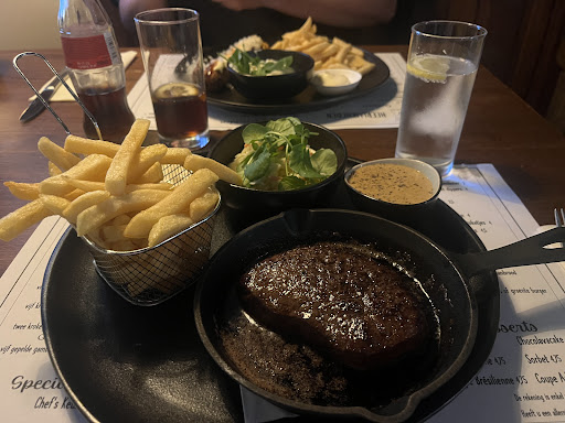 Ben hier hier op een vrijdag avond geweest met een grote groep. Was op uitnodiging van de jarige. Was naast ons nog 1 tafel bezet. Dus niet druk. Vriendelijke jonge man in bediening. Had iets proactiever mogen zijn qua drinken betreft. Had zelf vissoep en biefstuk met champignonsaus. Vissoep was lekker. Had iets meer mogen zijn. Kogelbieftsuk was gewoon zeer goed!!! Super mals, mooi portie en ook erg goed gebakken. Zeker een aanrader. Qua sfeer is het niet mijn ding maar als ik er nog eens kom dan neem ik zeker weer de kogelbieftsuk in roomboter! Prijs/qualiteit is ook zeer netjes. 19 euro voor een biefstuk met friet en salade. Mayo 50 cent en Championsaus 3,50. Helaas geen foto's maar zag er...