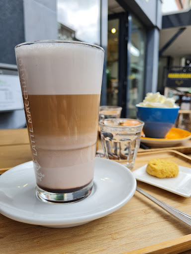 Cafe is nice, but the food is not that amazing. It feels like there's way too many chemicals in the food, the taste is super sweet and artificial. I bought a cherry pie or a variant thereof, and there were tough and solid items therein, I believe it was a pit. You can easily break your teeth on it. Also: the ordering proces was not chill at all: you really have to look for the menu, it should be presented somewhere. Or maybe make a website or something like that and put a QR-code somewhere. I really had to look where the menu was, then go back to the main desk, where the person just looked at me instead of saying: how can I help you, what do you want to order? I don't want to go on a quest to see what I can order: there should be a big menu, be it on a website or not, where you can clearly see what you can order (with pictures), and what the ingredients are, also: when are those cakes and pies made and by who? There should be some guarantuee like, every pie in the shop is not older than 2 days.