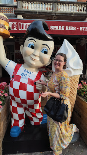 Overall, I thought the experience was cute and kitsch but overpriced for what it is. Also, the food is very much Dutchified and that's okay. But, if you're going for the authentic American diner experience you'll need to do a lot better on the little things: for example, onion rings in an American diner are always, always homemade from nice thick onion slices in batter or breaded (not frozen like the ones you can get at any Burger King), and, expecting a plain burger that I could "dress" to my liking at the table like in America, I was very surprised (and not in a good way) when it came back to me with...
