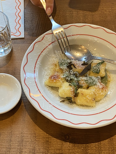 We ordered the burrata served on top of grilled asparagus. It was served with grilled sourdough bread. The ingredients were good, but I thought it missed some flavour. We also ordered the Neapolitan sandwich with mozzarella and pistachio. The sandwich was not filled very well. There was not enough mozzarella / only mozzarella in the middle of the sandwich. (Side note - it was quite difficult to cut the sandwich because the knives were so blunt.)