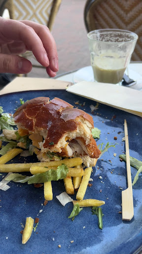 I ordered the crispy chicken burger with sweet potato fries. The food was freshly prepared. It arrived hot. The chicken was crispy. The sweet potato fries were a little soft. The brioche was a bit dry. Overall, the dish lacked flavour.