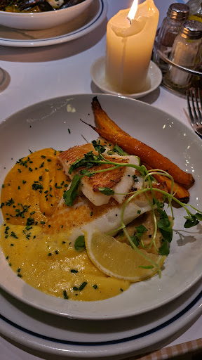 The "specials" menu at the entrance is tempting, so we had the anchovies starter and halibut main from there. Anchovies were nice and the halibut was cooked well, still flaky and had a fresh sea aroma. Halibut comes with a pumpkin puree and hollandaise sauce, I also picked mashed potatoes on the side. I love it when restaurants serve a slice of lemon with fish, but in this case, it wasn't necessary. The halibut was well-seasoned and the hollandaise sauce had enough acidity to complement it. I'd highly recommend it if you see in their menu again. We also tried their bouillabaisse, the broth was fresh, and it was one of the better fish soups I've had here so far. You could tell the ingredients were fresh. For dessert, I went for the special of the day: tarte a babeurre. A French take on pastel de nata, as our waiter described it. I liked that it wasn't as sweet as that, and the plating of the dessert was my favorite of the night.