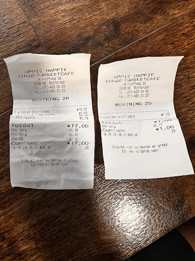 Appie happie is niet het happie wat je vroeger kende van de enige echte "Appie"! Na jaren maar weer eens een poging durven wagen nadat hun valse Herder eindelijk is gehemeld, (hoorde ik in de wandelgangen, gelukkig klopt dit alleen helaas is daar dan al wel weer een opvolger van een aantal maanden oud voor terug, als die met evenveel bijtincidenten op naam komt te staan, als slecht is zoals het eten dan......)ff een happie uit de snackbar! Jammer dat 3 snacks te lang gebakken waren waardoor bij de kaassouffle de kaas er uit uithing, de smulrol oud en vies smaakte en daarnaast eerst een hap paneermeel gevuld met lucht was, doordat ie aan de andere kant al opengeklapt en half leeggelopen was. Daarnaast het feit dat ik volgens mij geen moeite heb met duidelijk articuleren en beheersen van de NLse taal, maar de antwoorden terug er duidelijk op duiden dat de Nederlandse taal vanuit hun nog wel een tandje of 10 beter kan. Voor mij dus nooit meer, wat een ballentent! Volgende keer naar een misschien wat duurder restaurant, maar waar je meer waar en liefde krijgt in je eten. BAHBAH! Zoals het gezegde ook wel is, is goedkoop ook wel duurkoop! €15,- hoppa in de kliko, of misschien wel aan die pup! Succes voor degene die het durven, sluit een voedselvergiftiging ook...