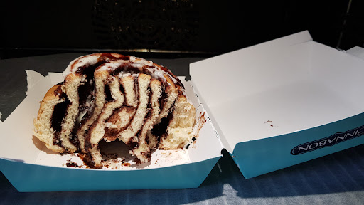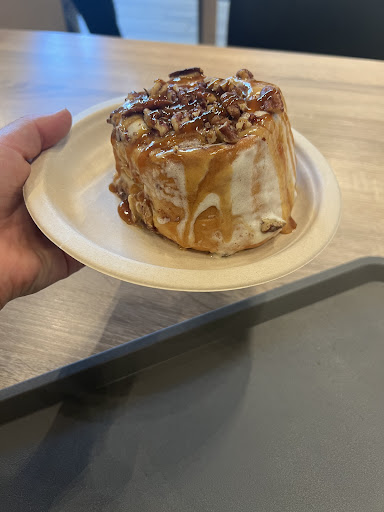 I'm not sure if I just remember it being better or that it actually was. The dough was fluffy but a bit sticky (I know it's supposed to be sticky, but it's the stuff on it that's supposed to make it sticky, not the dough itself), also it was really bland. The sauce was too sweet and the dough seemed not to have any sugar at all. As for the atmosphere, the music was loud and it wasn't my choice of music, so to say, 90s dance. But more importantly, the shop was a bit messy, the menu and other pieces of paper being hung with tape and stacked boxes and an open look into their inventory. All of this took away the luxurious feeling Cinnabon used to have. It was very...