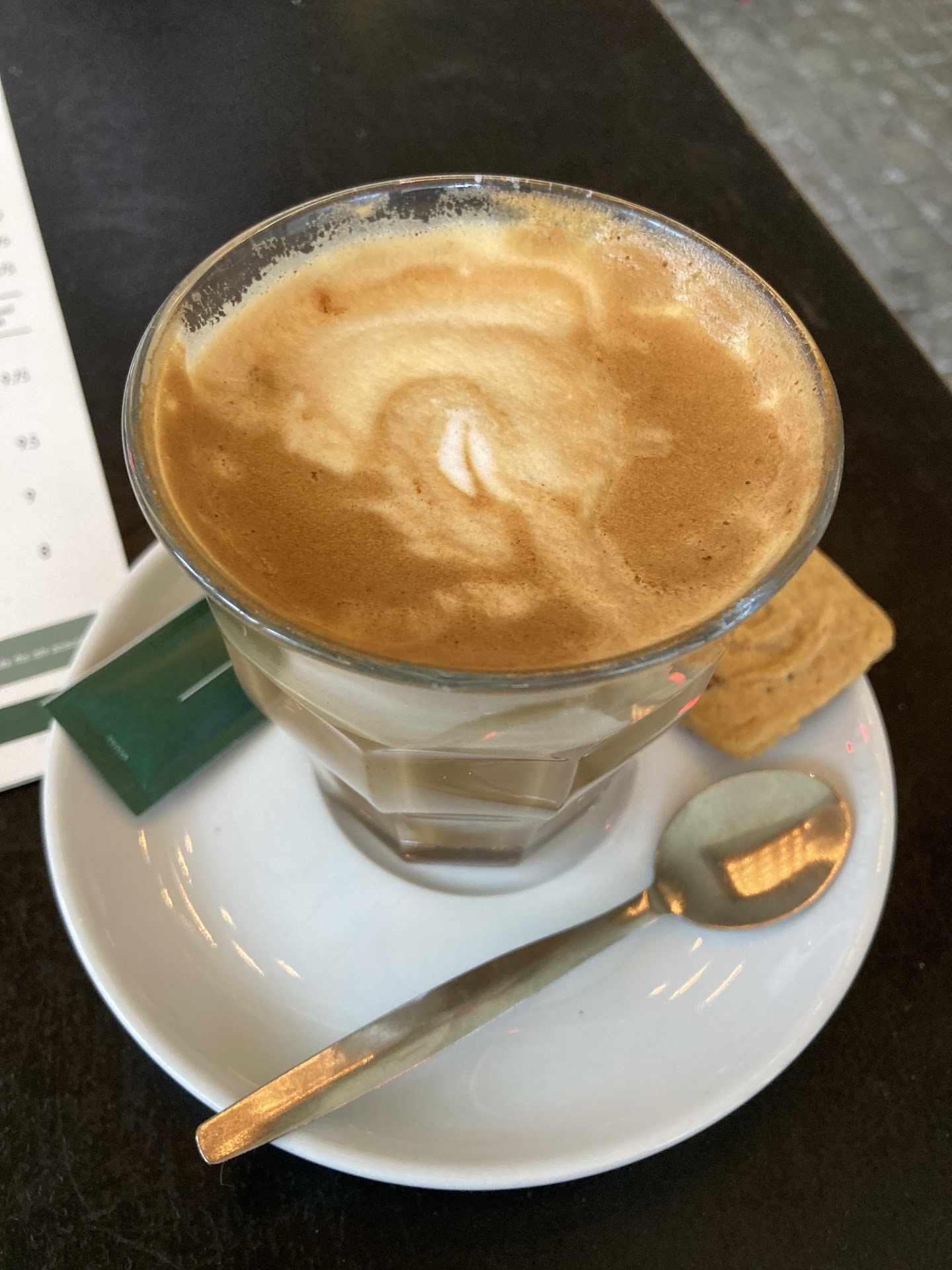 On tasting the coffee the extremely hot temperature was again noteworthy. Hot enough to burn my tongue, Iâd guess 90++ degrees. The natural sugars in the milk were long gone. The coffee was presented with a package of refined sugar, sadly necessary to make this brew palatable. This is very common in old style coffee shops. The coffee itself, despite the addition of milk, was bitter with a burnt caramel taste. Not enjoyable even by less modern standards. I took two sips, one on the coffee arriving (scalding hot) and the other after it cooled a little so I could give it a second assessment. Frankly it was awful. I drank no more. As an experiment I left the barely touched 4âŹ+ coffee sitting beside my plate to see if the staff would enquire to why I had not really touched it. There was no interest in why I ordered something and left it untouched. This probably brings us to the real issue here. A long established place with tried and true methods, that just donât get revisited or reassessed. Itâs no longer a vanguard restaurant changing the landscape of eating out in Rotterdam, itâs a institution and profit machine. This place is a âsafeâ choice (as long as you donât order an espresso drink), not a great choice.