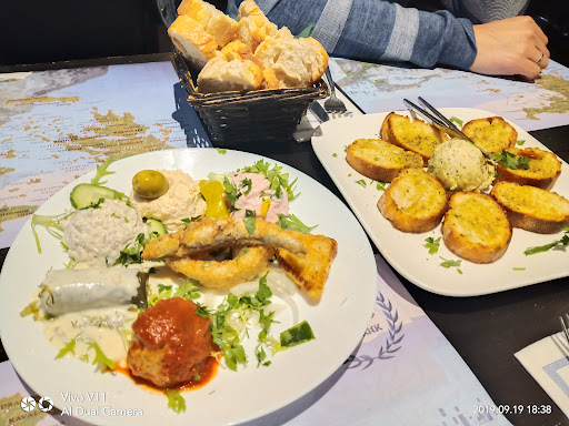Read moreLaat ik positief beginnen: bedienend personeel was aardig, het eten was goed te doen en er kwam Griekse muziek uit de luidsprekers. We waren met zes personen en hadden het driegangen menu, hierbij heb je een beperkte keuze uit de kaart - wat prima is. Alles werd in een keer opgenomen. Bij twee kwamen verkeerde voorgerechten (die niet eens op de kaart stonden). Toen de juiste kwamen waren de andere vier al klaar met het voorgerecht. Ik had van alles de vegetarische optie, het voorgerecht: bladerdeeg met feta en spinazie was ook ruim aanwezig in het hoofdgerecht. Ik zat dus twee keer hetzelfde te eten, plus veel grote stukken aardappel. Vijf van onze groep hadden patat gekozen met mayonaise. De mayonaise kwam niet, hiervoor moest ik naar de bar omdat het personeel niet aan je tafel meer komt. We kregen uiteindelijk 3 piepbakjes mayonaise. Personeel komt tussendoor niet vragen of alles naar wens is; je kunt dus geen drinken bestellen. Hiervoor moest je zelf naar de bar. De saladebar stelt echt niets voor, er zit niets Grieks in. Een paar slablaadjes en gesneden komkommer. Voor we weggingen nog even naar het toilet, was er geen toiletpapier. Ik was klaar met vragen om alles en ben naar de herentoilet gegaan. De zaak op zich is leuk, maar door al het vragen en extra wachten is het geen leuk...
