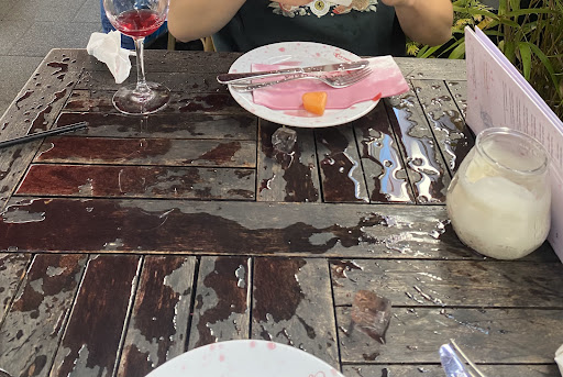 What disappointed us was the reaction that followed. When we politely asked a different waitress if we could move to another table—since ours was completely wet—she responded with visible annoyance and told us all tables were booked, despite several being visibly empty. Her irritated attitude continued while she served our food, which made the experience uncomfortable.